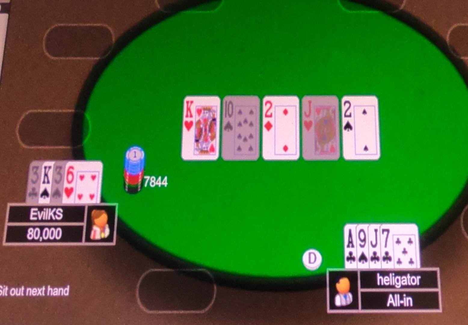 fell to Katie’s top pair on the flop.